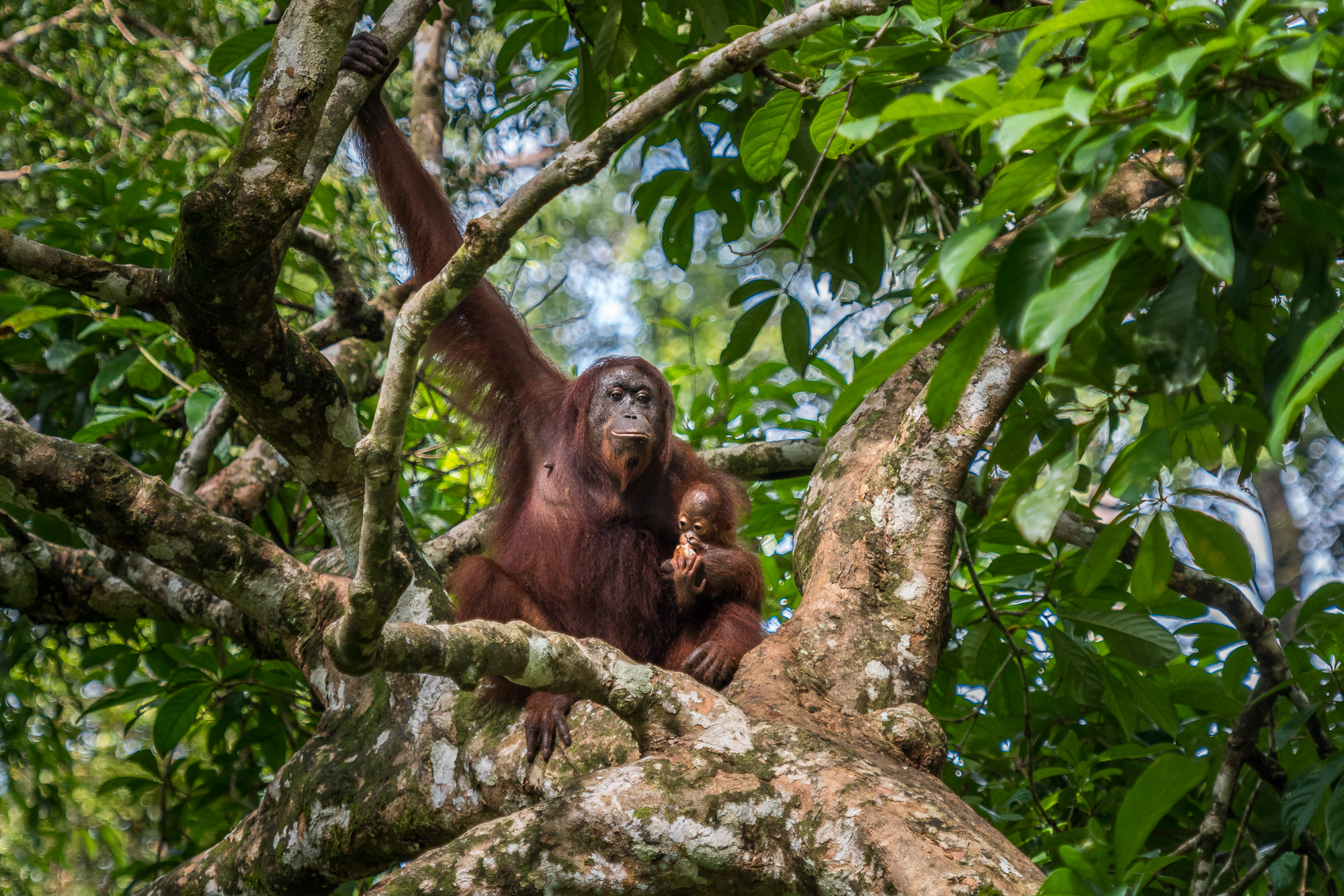 Due to rapid decrease in numbers of the Orang-Utan, there have been established rehabilitation centers. Here the animals live in semi wild conditions. They are free to return to a privately owned forest after they have recovered from their injury or when they are big enough in the case of youngsters. From the forest they can always return to the rehab-centre to get food.